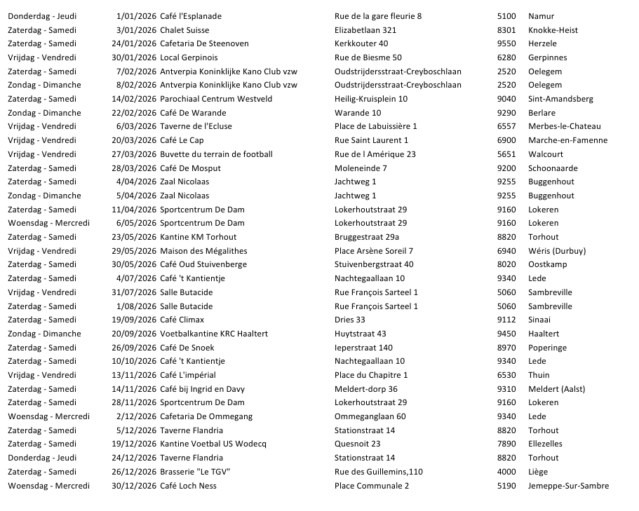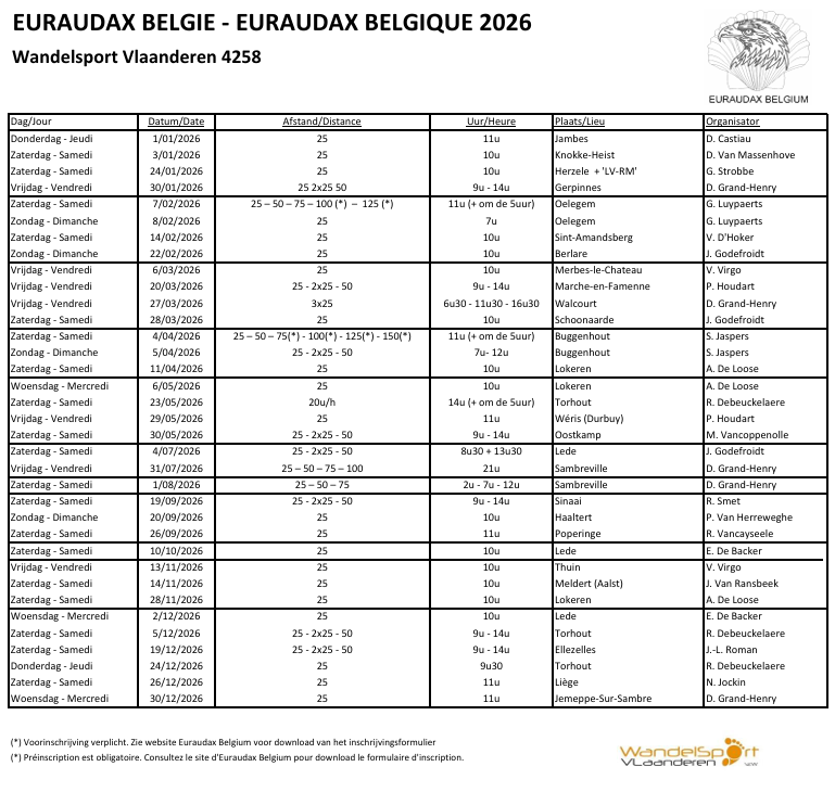 - Tocht van Thuin is verplaatst naar vrijdag 13.11.2026 / La marche de Thuin est déplacée au vendredi 13.11.2026